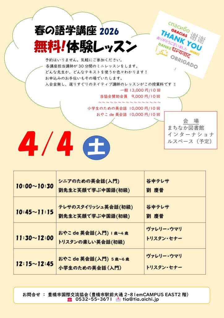 春の語学講座2026無料体験レッスン