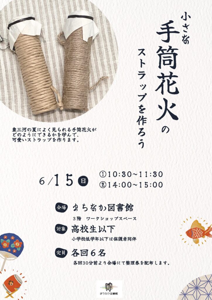 東三河の夏に見られる手筒花火がどのようにできるかを学んで、可愛いストラップを作ります。
