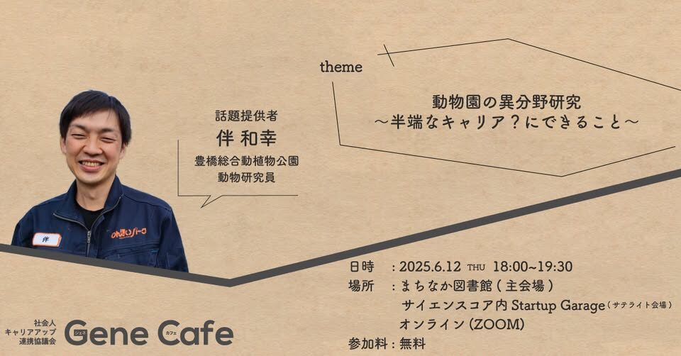 第67回ジェネカフェ『動物園の異分野研究 ~半端なキャリア?にできること~』