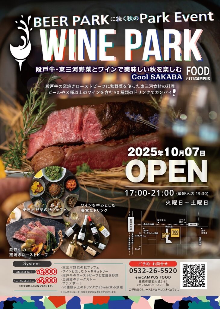 段戸牛・東三河野菜とワインで美味しい秋を楽しむ「COOL SAKABA」