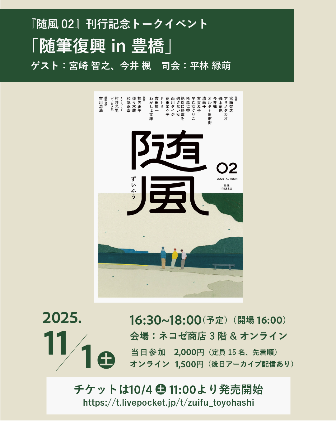 このたびネコゼ商店では『随風02』(書肆imasu)刊行を記念したトークイベントを開催します。