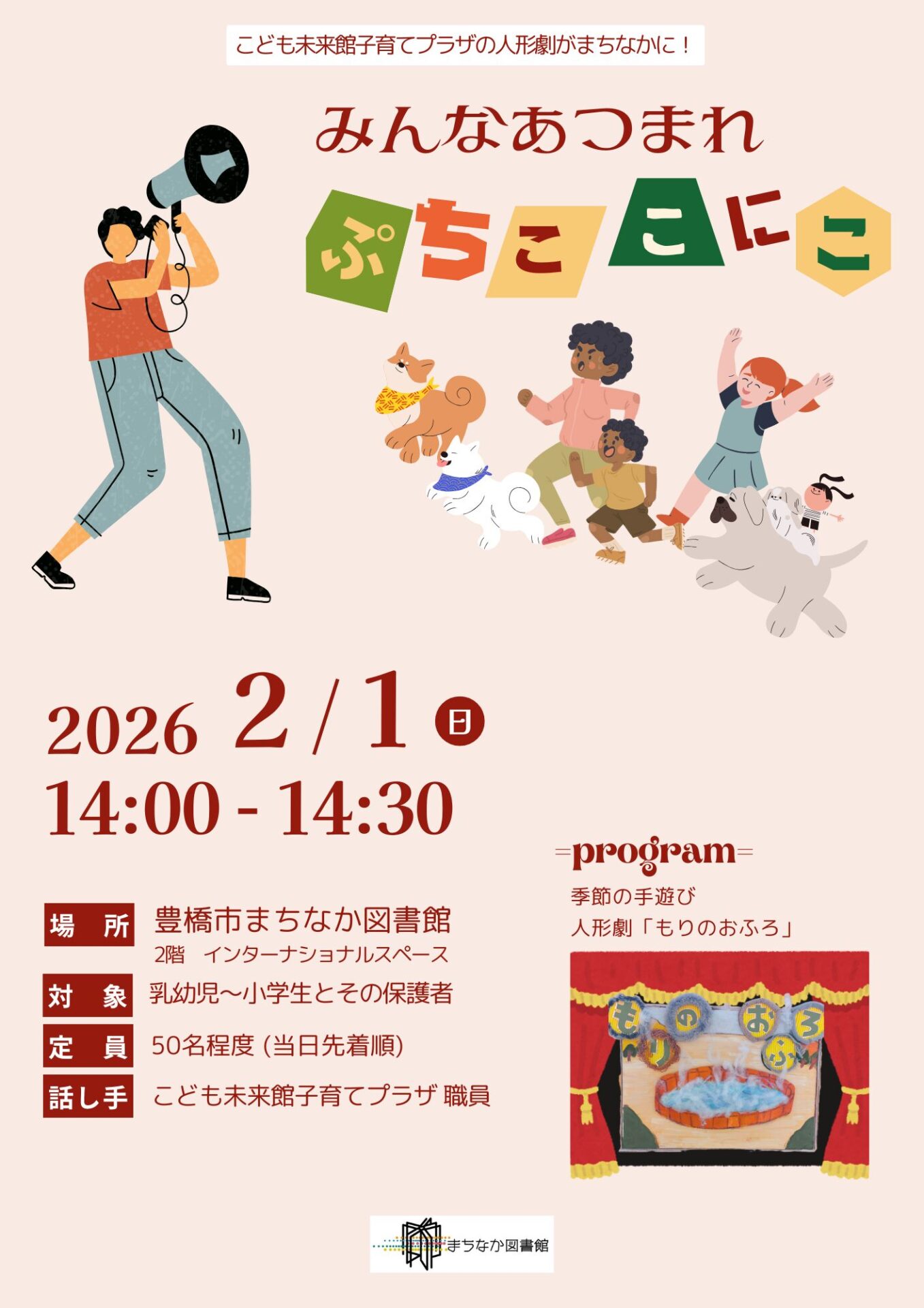 こども未来館子育てプラザの人形劇がまちなかに!季節の手遊びもあります。