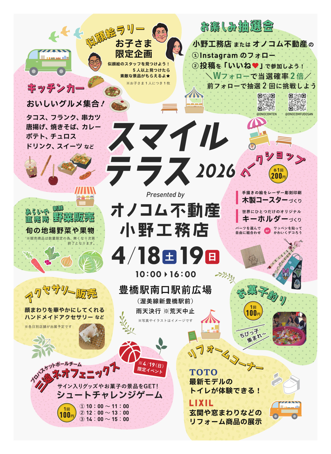 4/18(土)・19(日)の2日間、小野工務店×オノコム不動産が主催の「スマイルテラス 2026」を開催します!