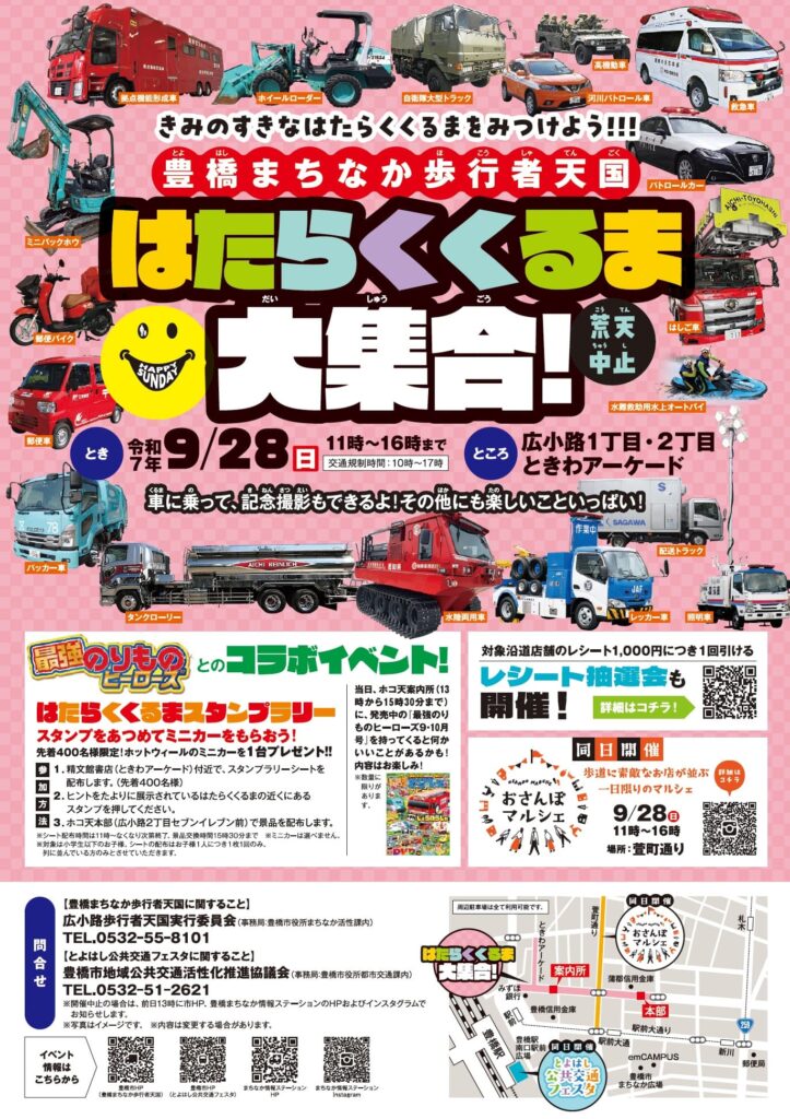 秋の豊橋まちなか歩行者天国「はたらくくるま大集合!」を開催します!