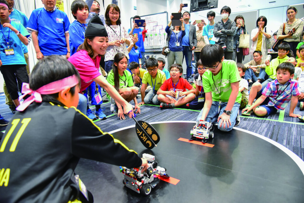 土俵上でレゴ製ロボットが激突、一瞬で勝敗が決まる手に汗握る勝負。子どもから大人まで、ものづくりと創意工夫の実体験が感動を呼ぶイベントです。
