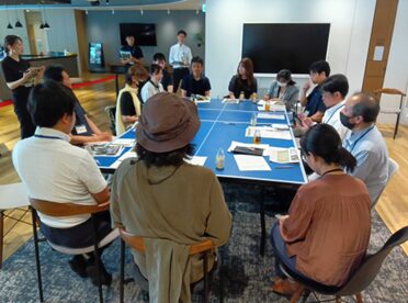 剪定作業後は、emCAMPUS STUDIOに戻り、参加者の自己紹介や各会社、団体で行っている事業等の紹介、ワークショップの感想共有・意見交換を行い、親睦を深めました。