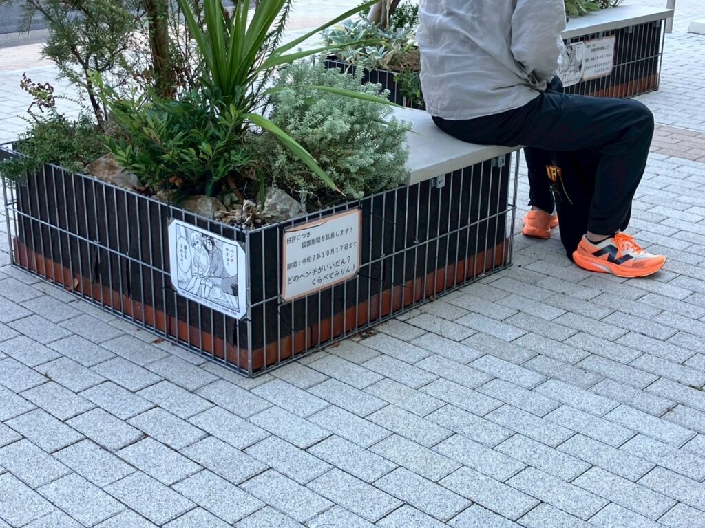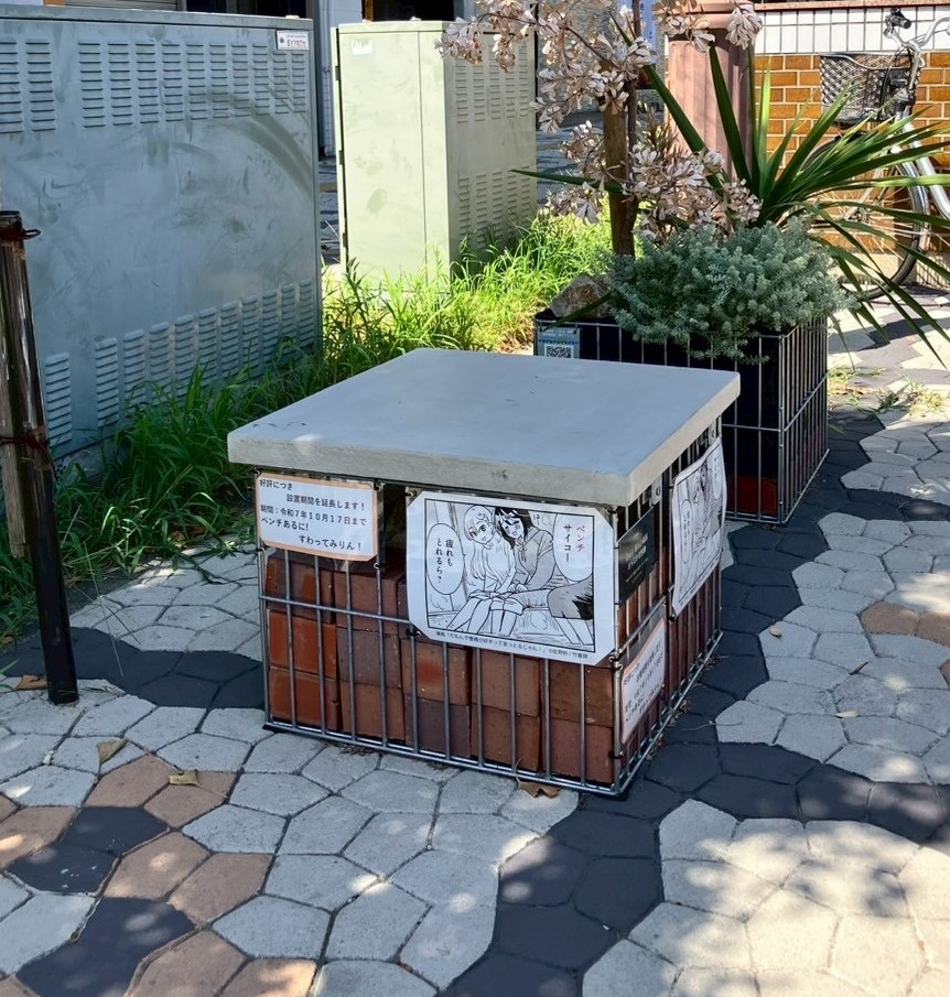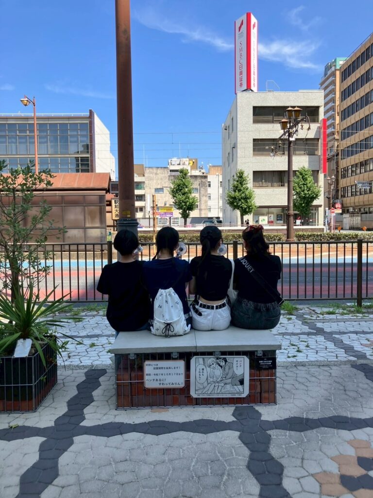 ベンチには、佐野妙先生の「だもんで豊橋が好きって言っとるじゃん」の漫画の1コマも設置されていますので、ぜひ、お立ち寄りください。