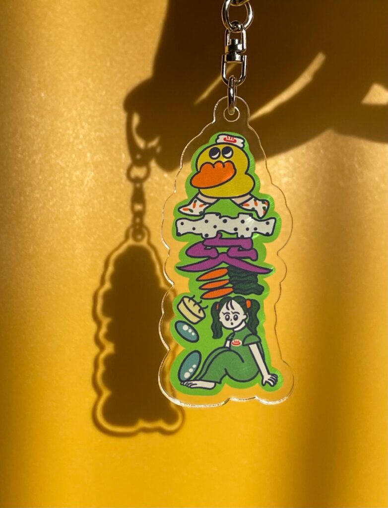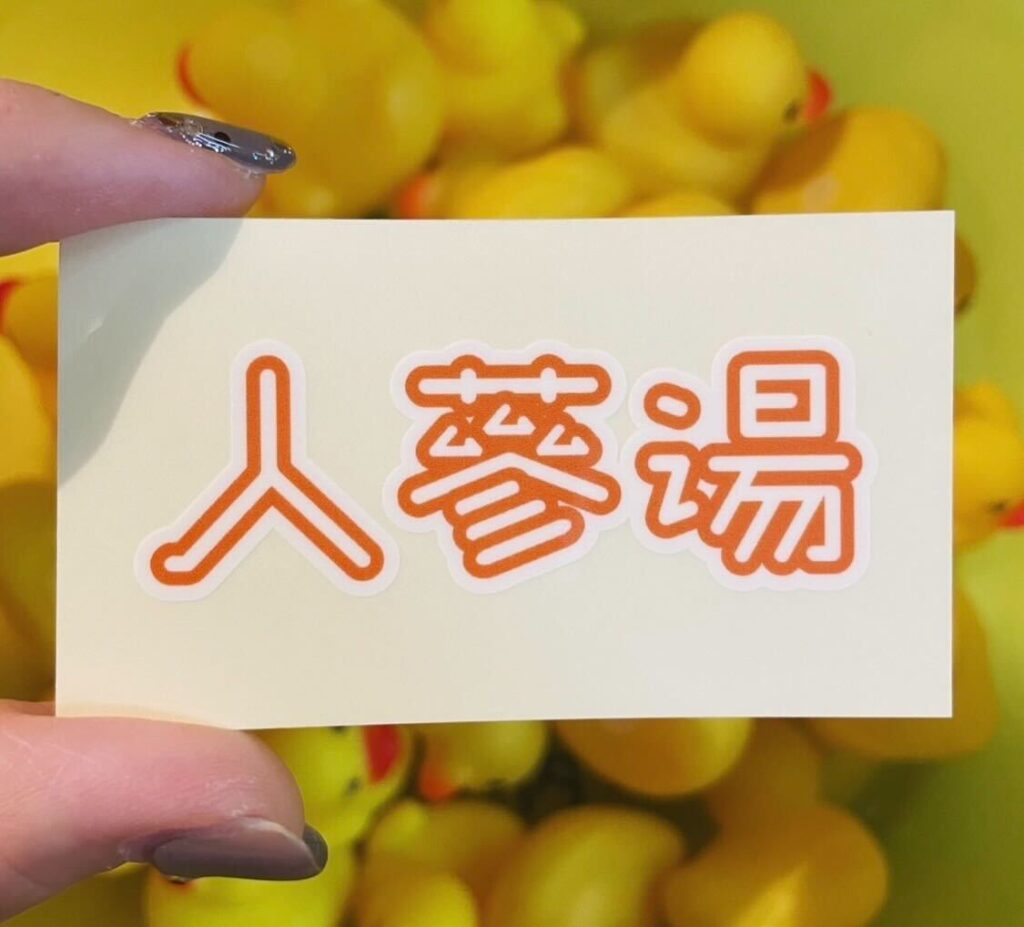 人蔘湯の浴室漫画でも お馴染み、人蔘湯のゆるキャラ、♨︎ にんじんゆーことせっかちあひる ♨︎がアクリルキーホルダーになって登場!! 【人蔘湯】という文字を、せっかちあひると、にんじんゆーこが一生懸命、表現してくれております。 かわいいお二方を、ぜひアナタの大切なお荷物にぶらさげちゃってください! Design : @dh_illust